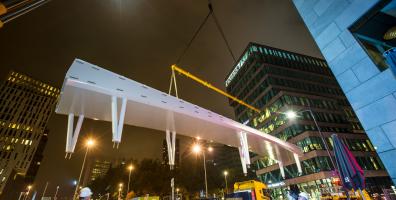 La plaza frente al Mercado de Rotterdam se ha transformado en 2015 por encargo del Ayuntamiento de Rotterdam. Se ha construido una pasarela que cruza por encima del profundizado cobertizo para bicicletas, que conecta el Blaak con el mercado. Se necesitó una grúa telescópica con una capacidad de elevación de 400 toneladas para colocar el puente de 30 toneladas. El puente se terminó después con pavimento de piedra natural.