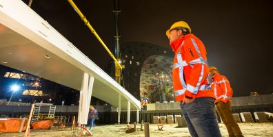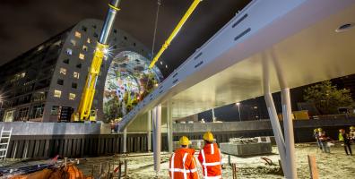 Plassen foran markedshallen i Rotterdam ble omformet i 2015 på oppdrag fra Rotterdam kommune. Det er bygget en gangbro over det utdypede sykkelskuret som forbinder Blaak med markedet. En teleskopkran med en løftekapasitet på 400 tonn var nødvendig for å få den 30 tonn tunge broen på plass. Etterpå ble broen ferdigstilt med natursteinbelegg.