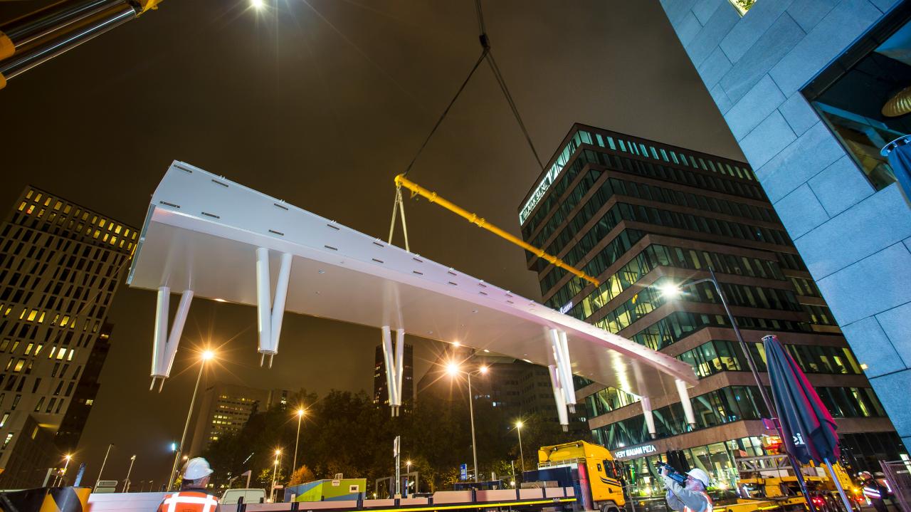 Piața din fața halei pieței din Rotterdam a fost transformată în 2015, la comanda orașului Rotterdam. A fost construită o pasarelă care să treacă peste magazia de biciclete adâncită, care face legătura între Blaak și piață. A fost nevoie de o macara telescopică cu o capacitate de ridicare de 400 de tone pentru a pune în funcțiune podul de 30 de tone. Ulterior, podul a fost finisat cu pavaj din piatră naturală.